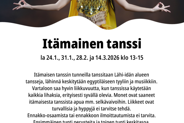 la 28.2.2026 klo 13-15 Itämaisen tanssin tunneilla tanssitaan Lähi-idän alueen tansseja, lähinnä keskitytään egyptiläiseen tyyliin…