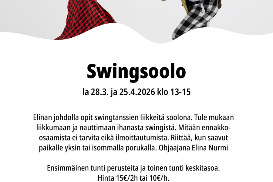 – klo 14 musiikkiin tanssiminen (keskitaso).