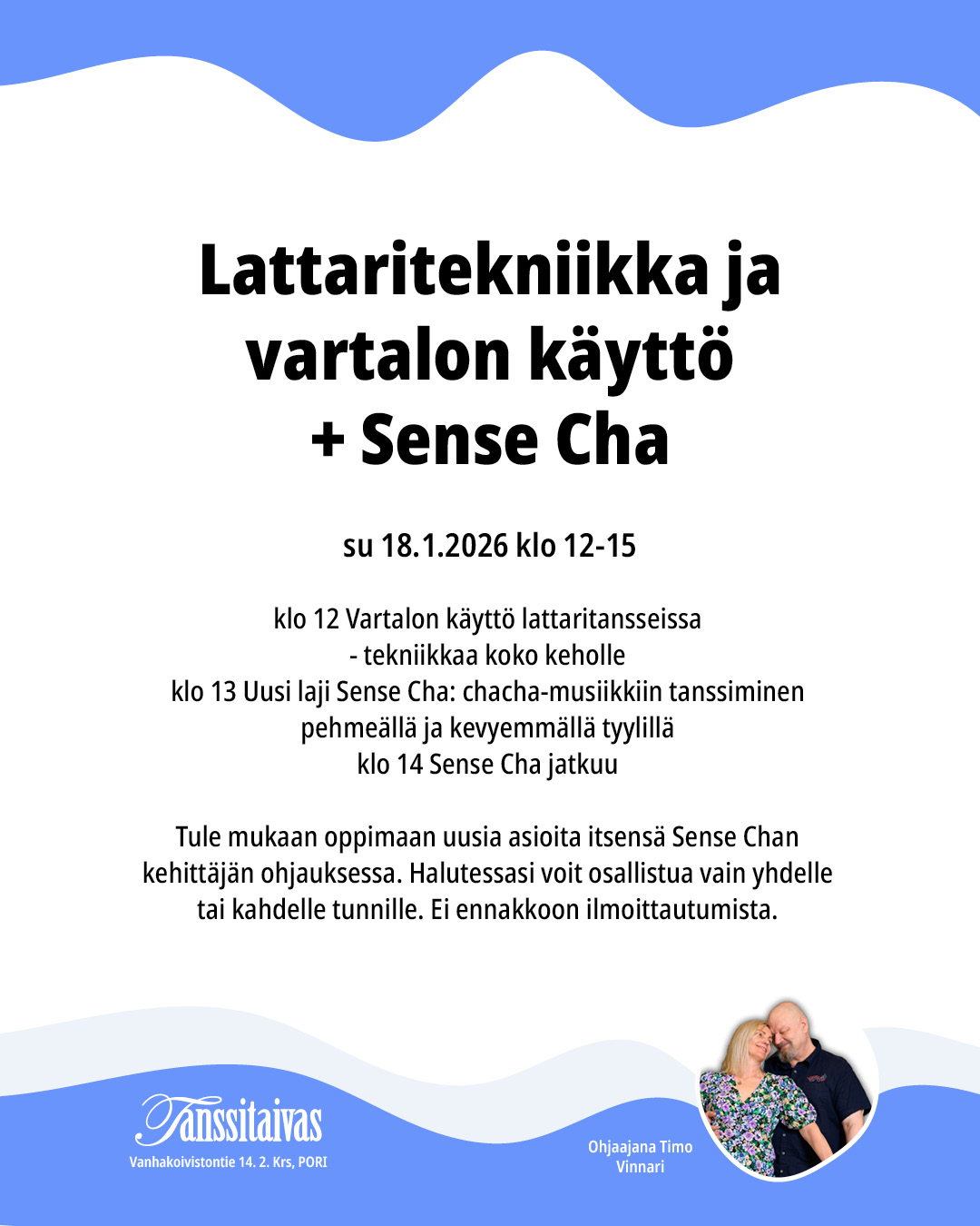 klo 13 Uusi laji Sense Cha: chacha-musiikkiin tanssiminen pehmeällä ja kevyemmällä tyylillä